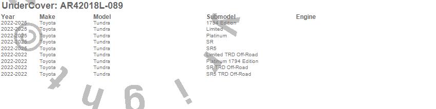 Below is an abbreviated list of applications for the UnderCover Fusion.Tundra, Toyota, 2025, 2024, 2023, 2022