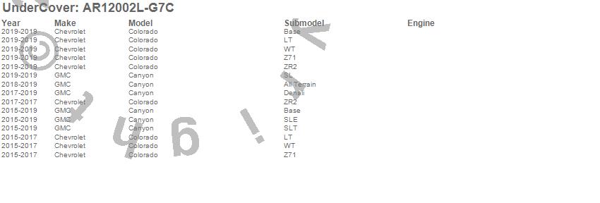 Below is an abbreviated list of applications for the UnderCover Fusion.Canyon, Colorado, Chevrolet, GMC, 2019, 2018, 2017, 2016, 2015