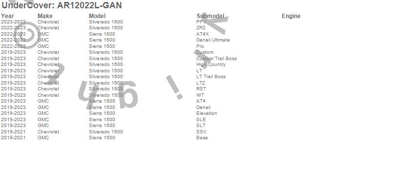 Below is an abbreviated list of applications for the UnderCover Fusion.Sierra 1500, Silverado 1500, Chevrolet, GMC, 2023, 2022, 2021, 2020, 2019