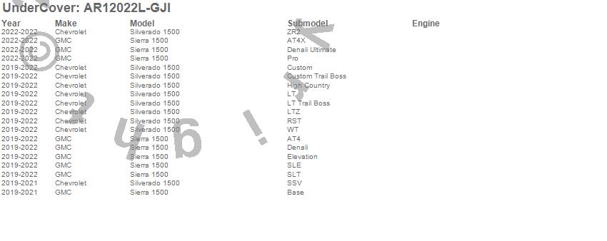 Below is an abbreviated list of applications for the UnderCover Fusion.Sierra 1500, Silverado 1500, Chevrolet, GMC, 2022, 2021, 2020, 2019