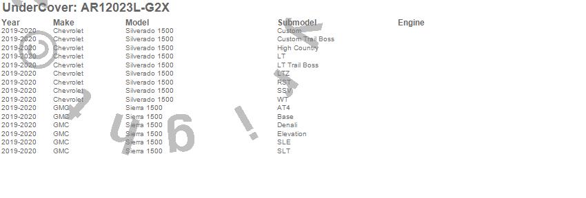 Below is an abbreviated list of applications for the UnderCover Fusion.Sierra 1500, Silverado 1500, Chevrolet, GMC, 2020, 2019