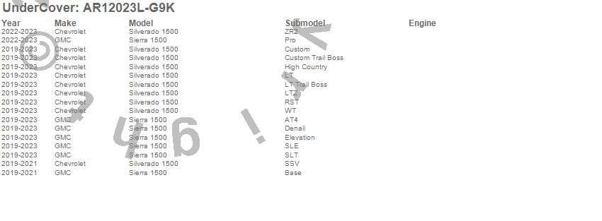 Below is an abbreviated list of applications for the UnderCover Fusion.Sierra 1500, Silverado 1500, Chevrolet, GMC, 2023, 2022, 2021, 2020, 2019