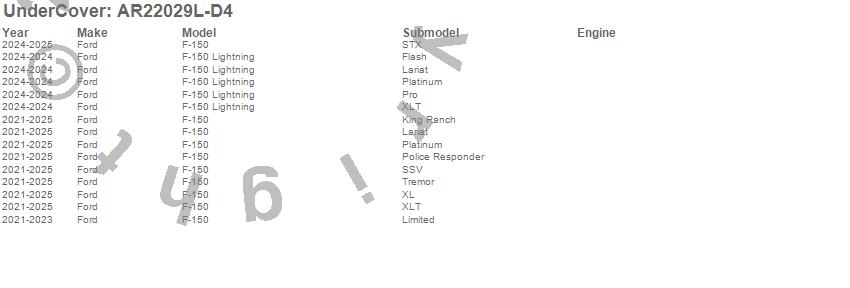 Below is an abbreviated list of applications for the UnderCover Fusion.F-150, F-150 Lightning, Ford, 2025, 2024, 2023, 2022, 2021