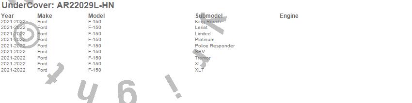 Brand: UnderCoverPart Number: AR22029L-HNTonneau Cover Type: Guard EffectUPC: 840114303631