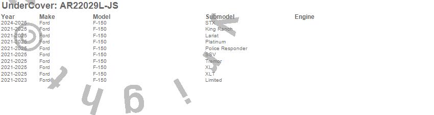 Below is an abbreviated list of applications for the UnderCover Fusion.F-150, Ford, 2025, 2024, 2023, 2022, 2021