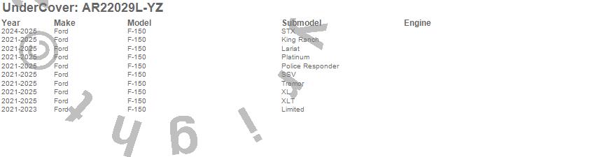 Below is an abbreviated list of applications for the UnderCover Fusion.F-150, Ford, 2025, 2024, 2023, 2022, 2021