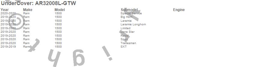 Below is an abbreviated list of applications for the UnderCover Fusion.1500, Ram, 2020, 2019