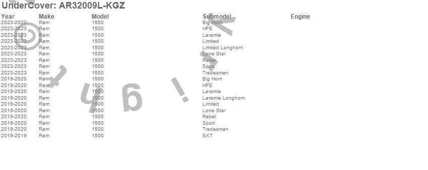 Below is an abbreviated list of applications for the UnderCover Fusion.1500, Ram, 2023, 2020, 2019