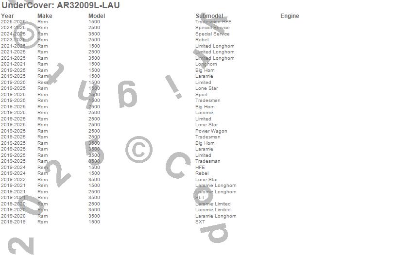 Below is an abbreviated list of applications for the UnderCover Fusion.1500, 2500, 3500, Ram, 2025, 2024, 2023, 2022, 2021, 2020, 2019
