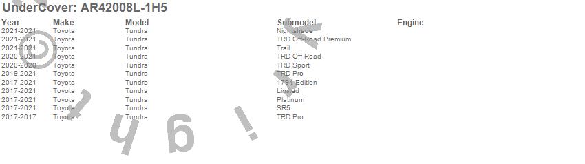 Below is an abbreviated list of applications for the UnderCover Fusion.Tundra, Toyota, 2021, 2020, 2019, 2018, 2017