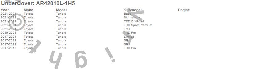 Below is an abbreviated list of applications for the UnderCover Fusion.Tundra, Toyota, 2021, 2020, 2019, 2018, 2017