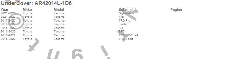 Below is an abbreviated list of applications for the UnderCover Fusion.Tacoma, Toyota, 2022, 2021, 2020, 2019, 2018, 2017, 2016