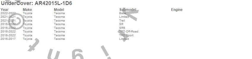 Below is an abbreviated list of applications for the UnderCover Fusion.Tacoma, Toyota, 2022, 2021, 2020, 2019, 2018, 2017, 2016