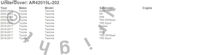 Below is an abbreviated list of applications for the UnderCover Fusion.Tacoma, Toyota, 2023, 2017, 2016