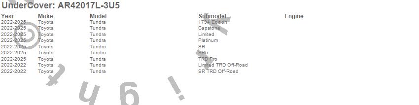 Below is an abbreviated list of applications for the UnderCover Fusion.Tundra, Toyota, 2025, 2024, 2023, 2022