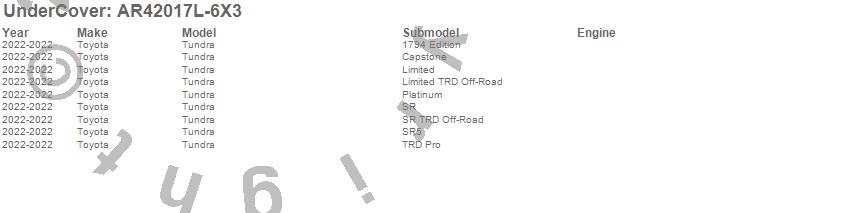 Below is an abbreviated list of applications for the UnderCover Fusion.Tundra, Toyota, 2022