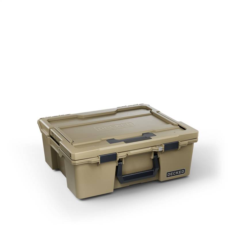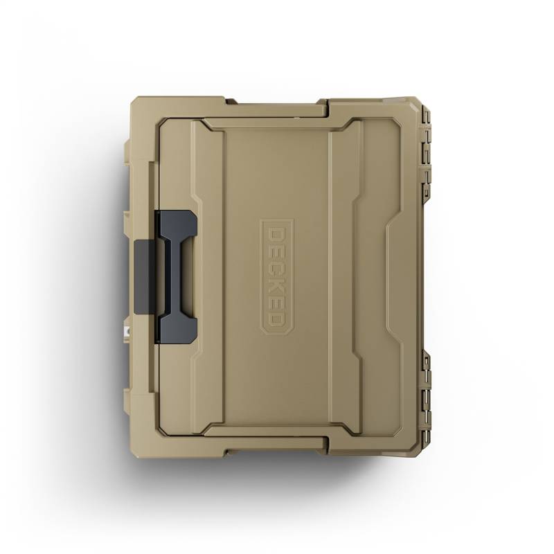 Buy this Halfrack 32 D-co Case DECKED A0020-HRAK-TAN Includes D-Co Tray - Tan w/Black Latches here at SVCustoms.com an authorized DECKED Truck Bed Storage Box dealer and distributor.