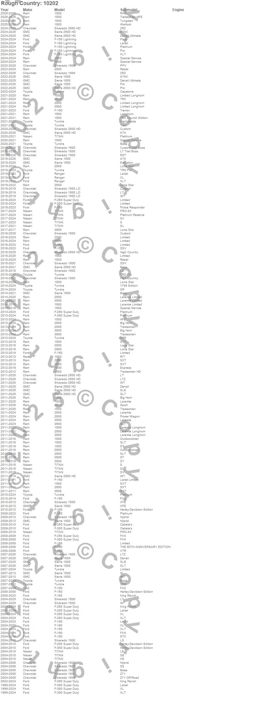Brand: Rough CountryPart Number: 10202Cargo Holder Type: Easy Access - Full Size 56 in.UPC: 840269946981