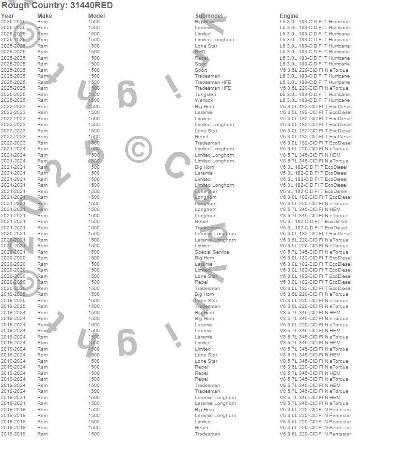 Below is an abbreviated list of applications for the Suspension Lift Kit w/Shocks.1500, Ram, 2025, 2024, 2023, 2022, 2021, 2020, 2019