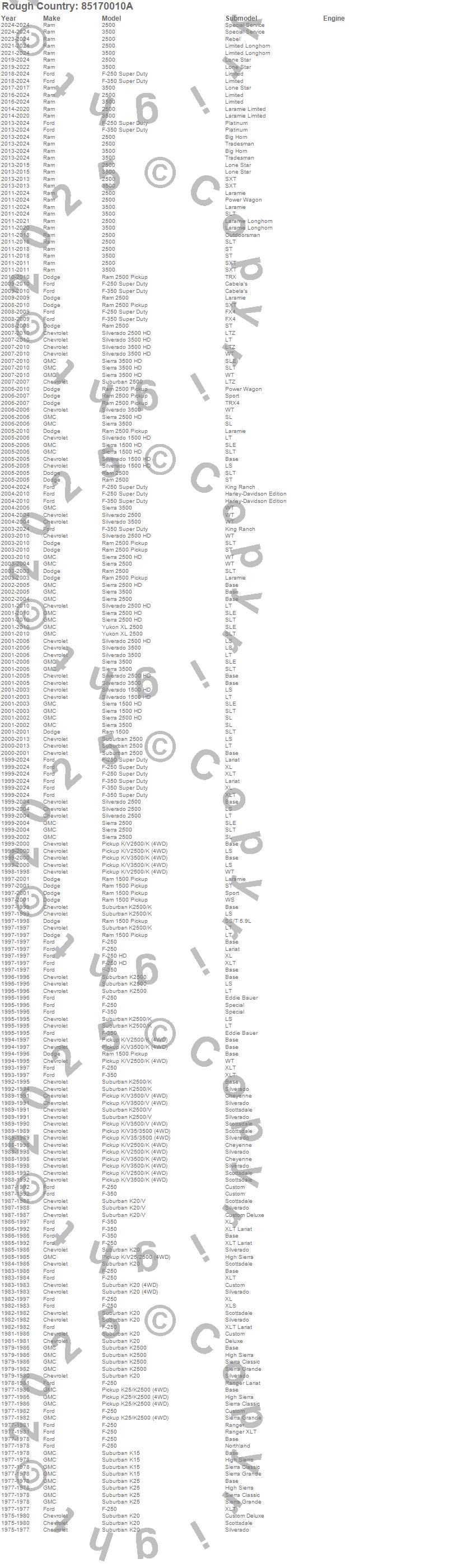 Below is an abbreviated list of applications for the Series 85 Wheel.2500, 3500, F-250, F-250 HD, F-250 Super Duty, F-350, F-350 Super Duty, K15 Suburban, K20 Suburban, K25 Pickup, K25 Suburban, K2500 Pickup, K2500 Suburban, K3500 Pickup, Ram 1500, Ram 2500, Sierra 1500 HD, Sierra 2500, Sierra 2500 HD, Sierra 3500