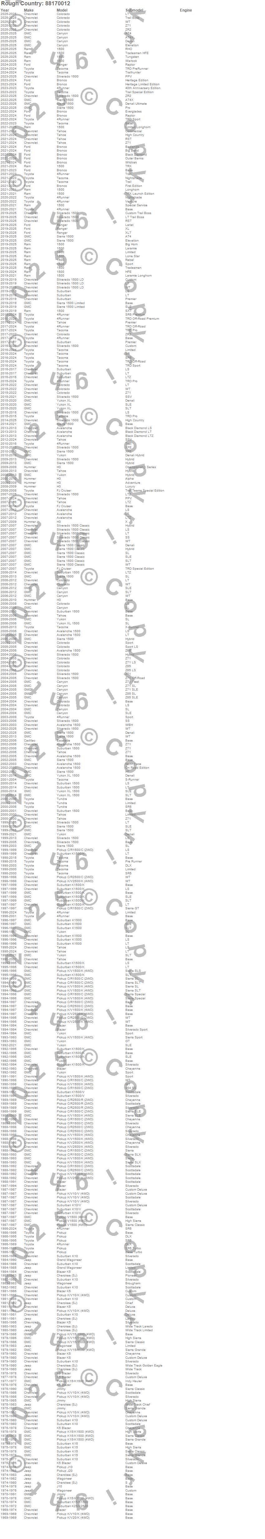 Below is an abbreviated list of applications for the Series 88 Wheel.1500, 4Runner, Avalanche, Avalanche 1500, Blazer, Blazer K5, Bronco, C1500 Pickup, C2500 Pickup, Canyon, Cherokee (SJ), Colorado, Escalade, FJ Cruiser, Grand Wagoneer, H3, J10, J20, Jimmy, K10 Pickup