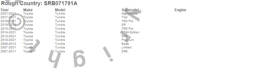 Brand: Rough CountryPart Number: SRB071791ARunning Board Type: Crewmax CabUPC: 840269939792