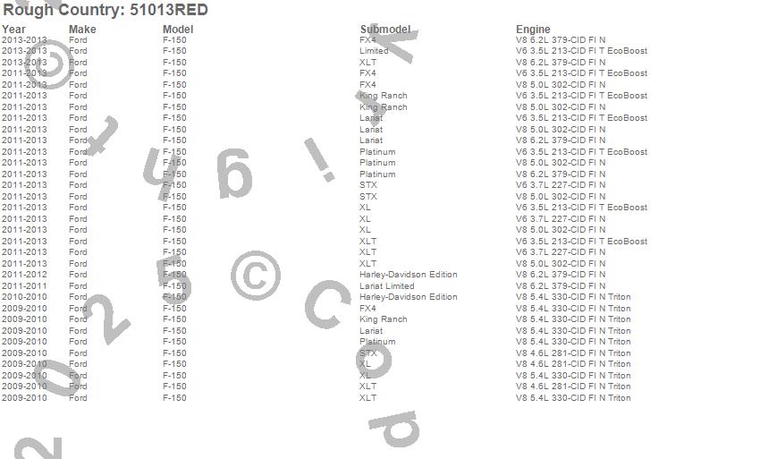 Below is an abbreviated list of applications for the Suspension Lift Kit.F-150, Ford, 2013, 2012, 2011, 2010, 2009