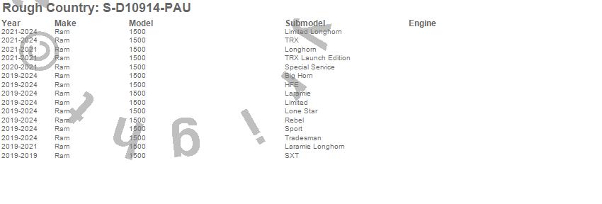 Brand: Rough CountryPart Number: S-D10914-PAUFender Flare Type: Sport - PAU Granite CrystalUPC: 840269947957