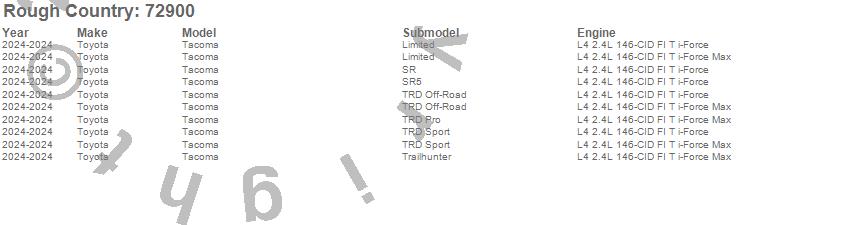 Below is an abbreviated list of applications for the Suspension Leveling Lift Kit.Tacoma, Toyota, 2024