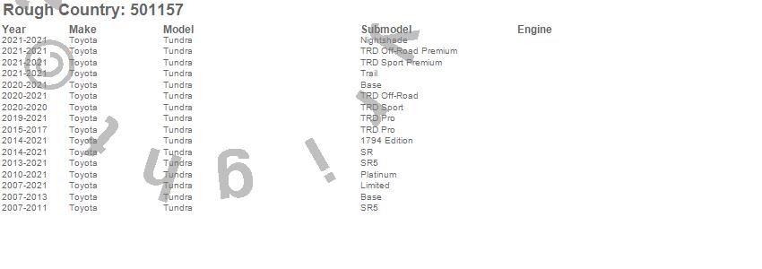 Below is an abbreviated list of applications for the Lifted N3 Struts.Tundra, Toyota, 2021, 2020, 2019, 2018, 2017, 2016, 2015, 2014, 2013, 2012, 2011, 2010, 2009, 2008, 2007