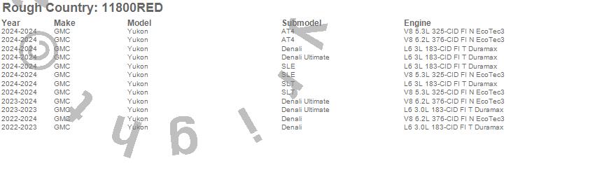 Below is an abbreviated list of applications for the Suspension Lift Kit.Yukon, GMC, 2024, 2023, 2022