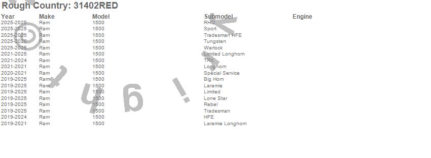 Brand: Rough CountryPart Number: 31402REDControl Arm Type: Forged Upper - 3-3.5 in. LiftUPC: 840269938634