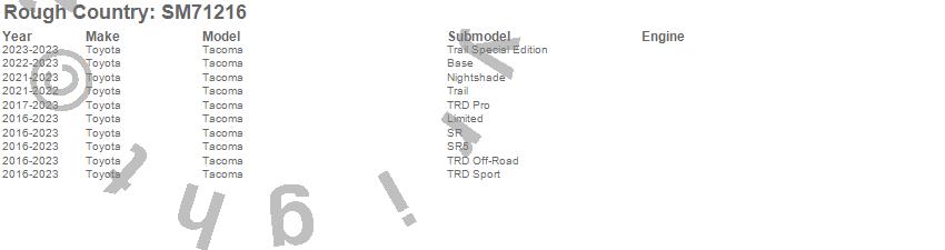 Brand: Rough CountryPart Number: SM71216Floor Mat Set Type: Front and RearUPC: 840269946769