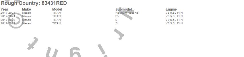 Below is an abbreviated list of applications for the Suspension Lift Kit w/Shocks.TITAN, Nissan, 2024, 2023, 2022, 2021, 2020, 2019, 2018, 2017