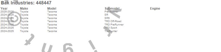 Brand: BAK IndustriesPart Number: 448447Tonneau Cover Type: Black - Aluminum - Matte FinishUPC: 192631047612
