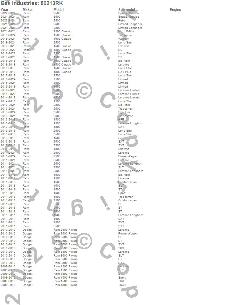 Below is an abbreviated list of applications for the Revolver X4ts Hard Rolling Truck Bed Cover.1500, 1500 Classic, 2500, 3500, Ram 1500, Ram 2500, Ram 3500, Dodge, Ram, 2024, 2023, 2022, 2021, 2020, 2019, 2018, 2017, 2016, 2015, 2014