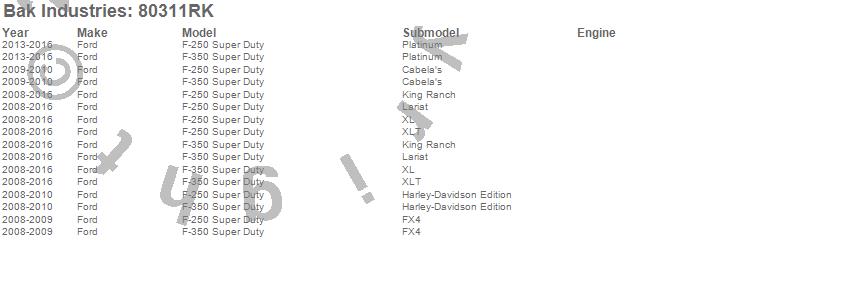 Brand: BAK IndustriesPart Number: 80311RKTonneau Cover Type: Black - Vinyl Top w/ Aluminum Underside - Matte Black FinishUPC: 192631047384