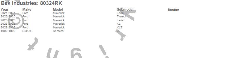 Brand: BAK IndustriesPart Number: 80324RKTonneau Cover Type: Black - Vinyl Top w/ Aluminum Underside - Matte Black FinishUPC: 192631047711