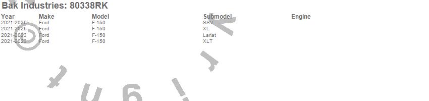 Brand: BAK IndustriesPart Number: 80338RKTonneau Cover Type: Black - Vinyl Top w/ Aluminum Underside - Matte Black FinishUPC: 192631047377