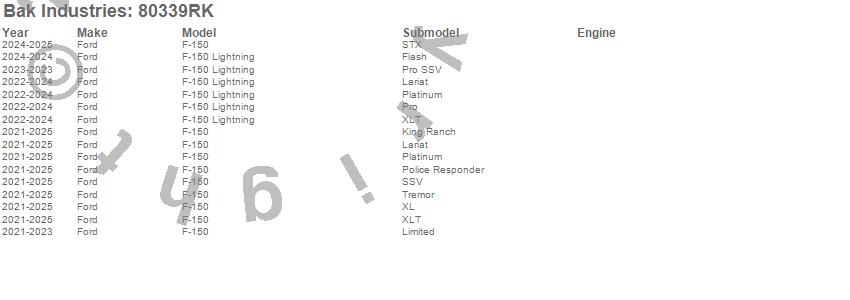 Brand: BAK IndustriesPart Number: 80339RKTonneau Cover Type: Black - Vinyl Top w/ Aluminum Underside - Matte Black FinishUPC: 192631047780