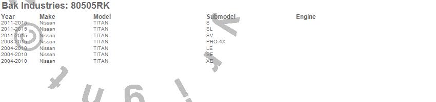 Brand: BAK IndustriesPart Number: 80505RKTonneau Cover Type: Black - Vinyl Top w/ Aluminum Underside - Matte Black FinishUPC: 192631047902