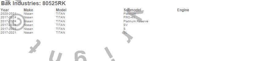 Brand: BAK IndustriesPart Number: 80525RKTonneau Cover Type: Black - Vinyl Top w/ Aluminum Underside - Matte Black FinishUPC: 192631047940