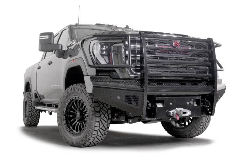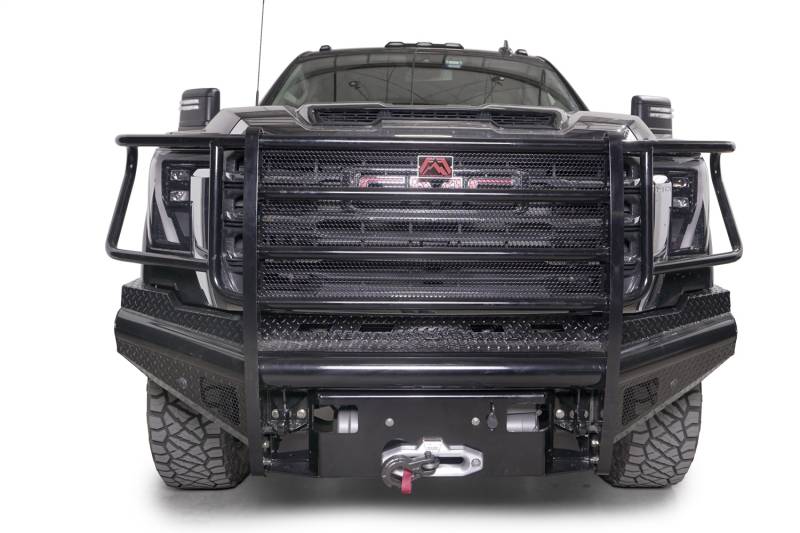 Buy this Black Steel Front Bumper Fab Fours GM24-S6260-1 w/ Full Guard - w/ Sensor - Incl. Tow Hooks here at SVCustoms.com an authorized Fab Fours Bumper- Front dealer and distributor.