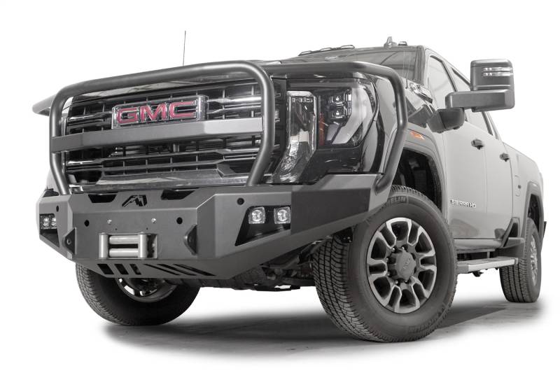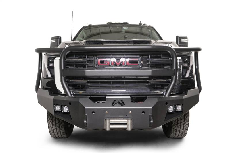 Buy this Premium Winch Front Bumper Fab Fours GM24-A6250-1 w/ Full Guard - 2 Stage Black Powder Coat - w/ Sensor here at SVCustoms.com an authorized Fab Fours Bumper- Front dealer and distributor.