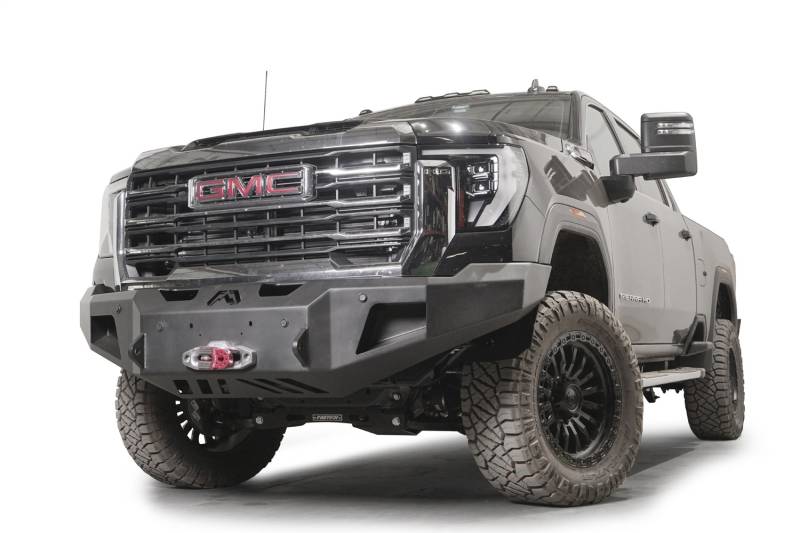 Buy this Premium Winch Front Bumper Fab Fours GM24-A6251-1 w/ No Guard - 2 Stage Black Powder Coat - w/ Sensor here at SVCustoms.com an authorized Fab Fours Bumper- Front dealer and distributor.
