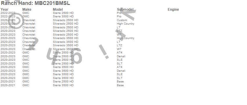 Brand: Ranch HandPart Number: MBC201BMSLBumper- Rear Type: Carbon SteelUPC: 848917009934