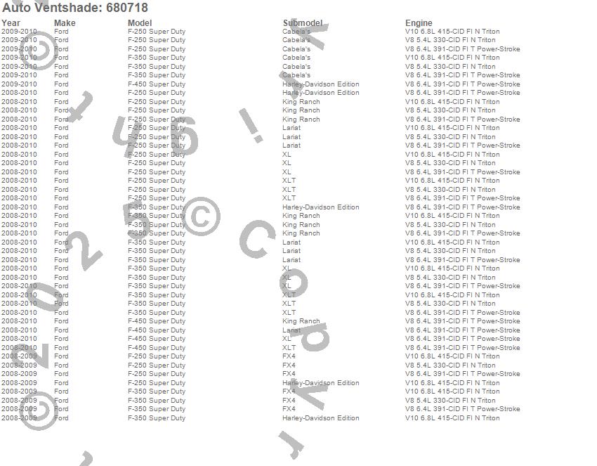 Below is an abbreviated list of applications for the Chrome Hood Shield.F-250 Super Duty, F-350 Super Duty, F-450 Super Duty, Ford, 2010, 2009, 2008