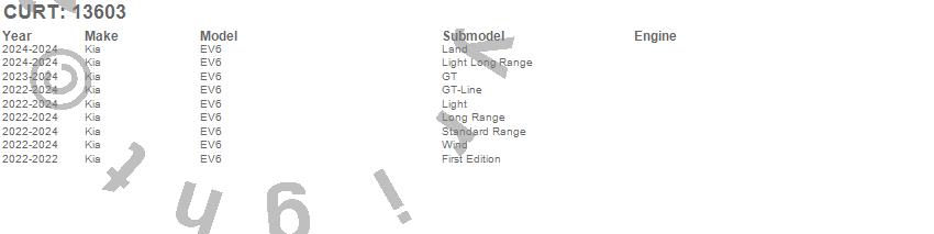 Below is an abbreviated list of applications for the Class III 2 in. Receiver Hitch.EV6, Kia, 2025, 2024, 2023, 2022