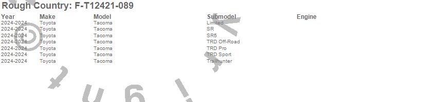 Brand: Rough CountryPart Number: F-T12421-089Fender Flare Type: Wind Chill PearlUPC: 840269954511