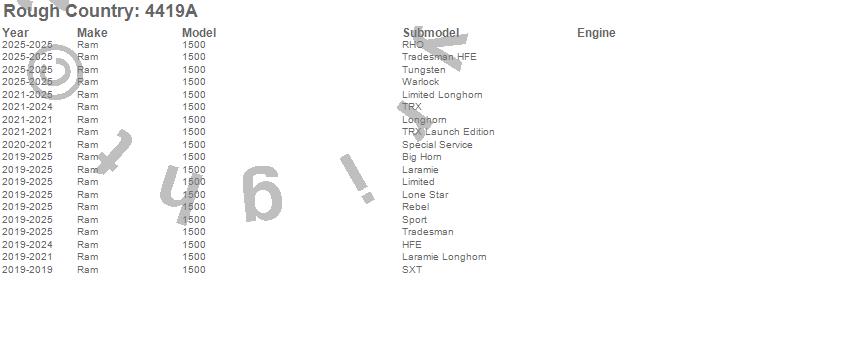 Brand: Rough CountryPart Number: 4419AFender Liner Type: RearUPC: 840269946813